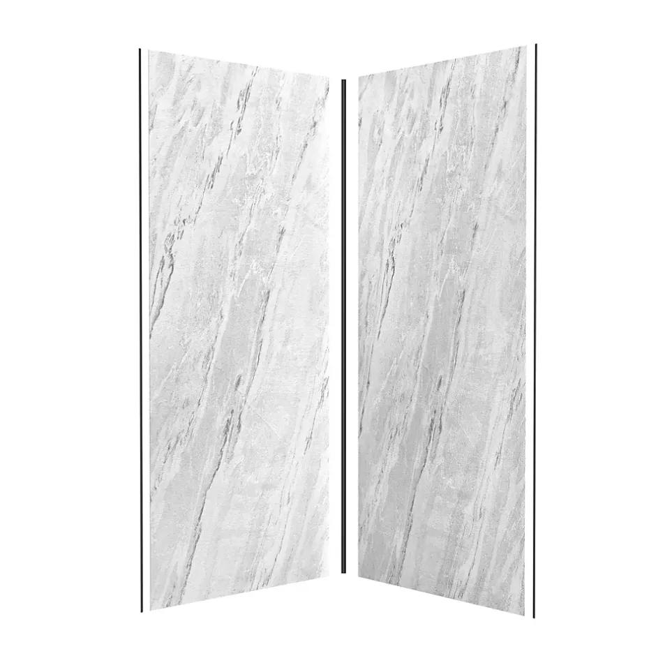 Pack de 2 panneaux muraux de salle de bains, blanc effet marbre avec profilés noirs, l.90+90 x H.210 x P.0,3 cm, Galedo Homestone