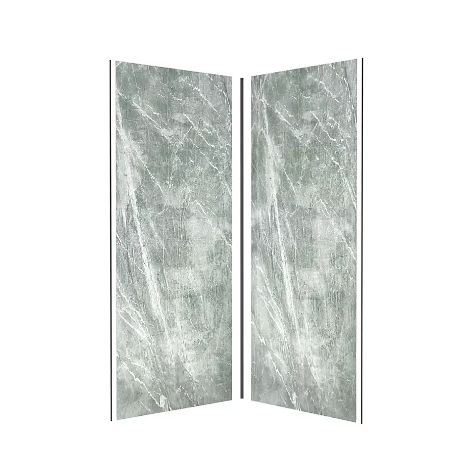 Pack de 2 panneaux muraux de salle de bains, vert effet pierre avec profilés noirs, l.90+90 x H.210 x P.0,3 cm, Galedo Homestone