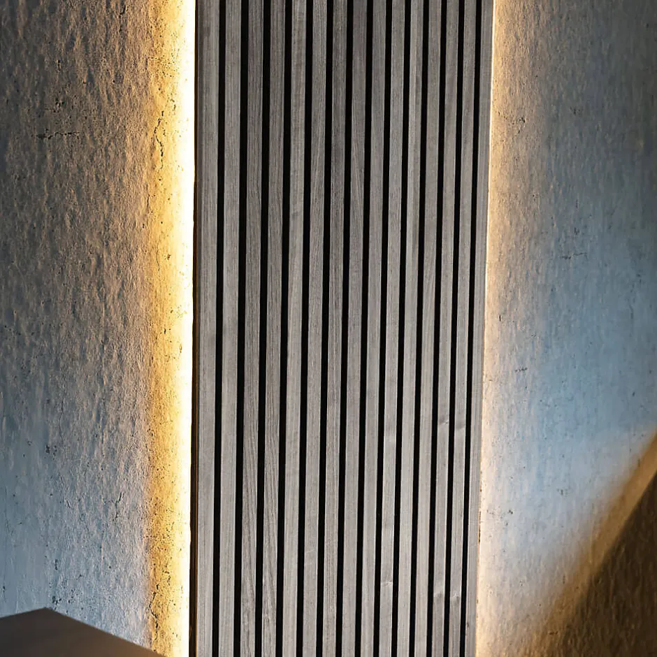Dimensions par panneau acoustique (L x l x H) : 240 x 40,5 x 2,1 cmMatériau : feutre en polyesterCouleur : Grey-OakInstallation rapide et facile – Do it yourselfDesign scandinave à partir de matériaux respectueux de l’environnementAtténue le bruit grâce au feutre acoustiquePeut être raccourci et découpé individuellementTransforme tes murs en un véritable point fort – avec les panneaux muraux SONIC. Le design moderne crée immédiatement une atmosphère élégante et confère à chaque pièce un caractère exclusif.Les panneaux muraux SONIC convainquent par leur finition de qualité et leur design intemporel. Qu’ils soient utilisés comme détail discret ou comme élément de décoration marquant, ils apportent chaleur, élégance et un sentiment de modernité dans tes pièces. Grâce à leur flexibilité d’utilisation, tu peux combiner les panneaux selon ton style et faire ainsi du salon, de la chambre à coucher, du bureau ou du couloir un véritable point de mire. Le montage est simple et te permet de réaménager tes murs rapidement et facilement.Avec les panneaux muraux SONIC, fais une déclaration claire dans ta maison. Commande maintenant et donne à tes pièces le look moderne et raffiné qu’elles méritent !Remarque : veuillez noter que la couleur des placages de bois peut varier en fonction du lot. De plus, la couleur des panneaux peut apparaître différemment selon l’exposition à la lumière. Ces caractéristiques naturelles ne constituent pas un motif de réclamation. Détails du produit:Panneau mural de style scandinaveInsonorisantMontage rapide et facilePeut être raccourci et découpé individuellement