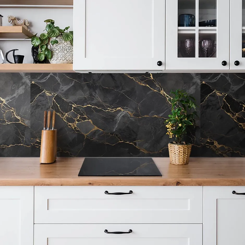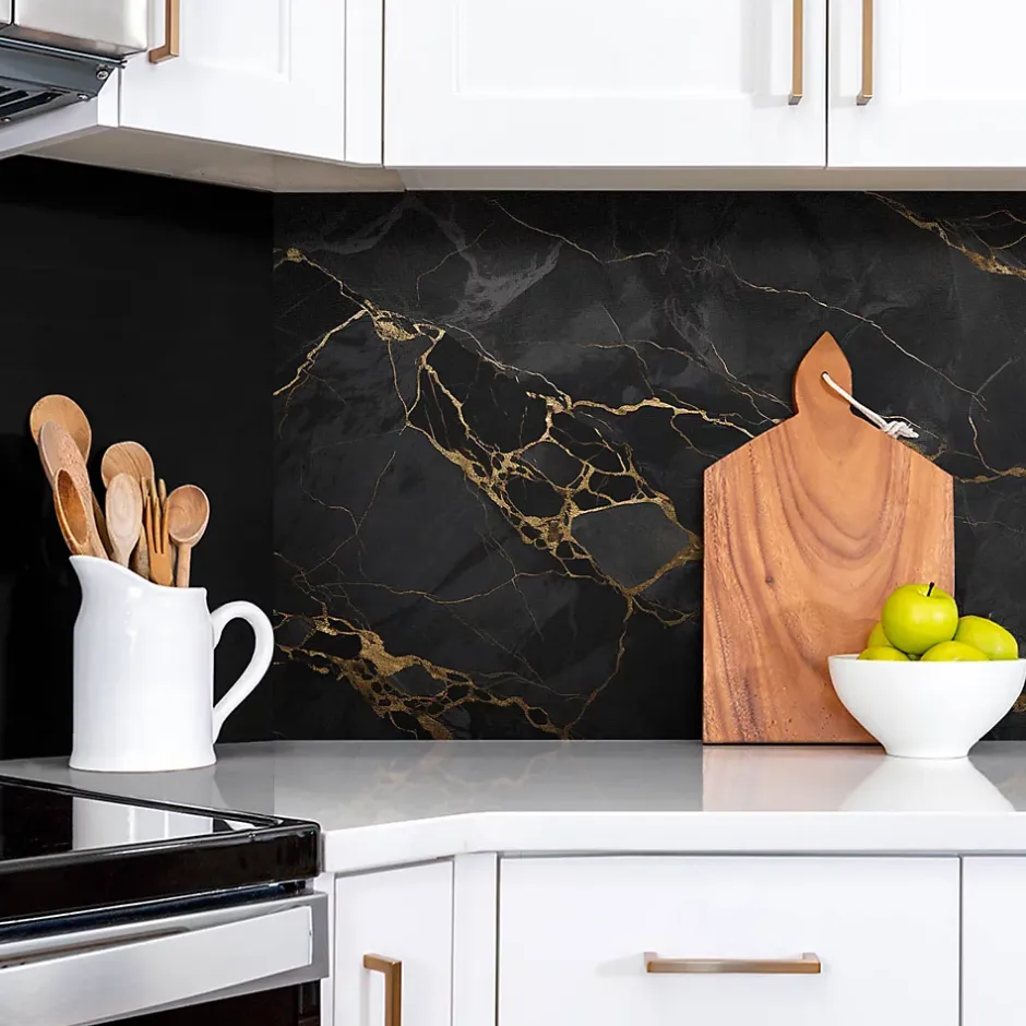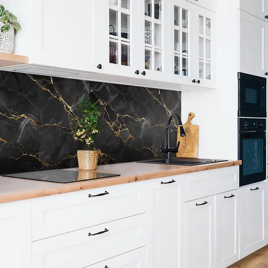 Panneau autocollant 100×50 cm Marbre foncé et or 1 pcs-Tulup Best