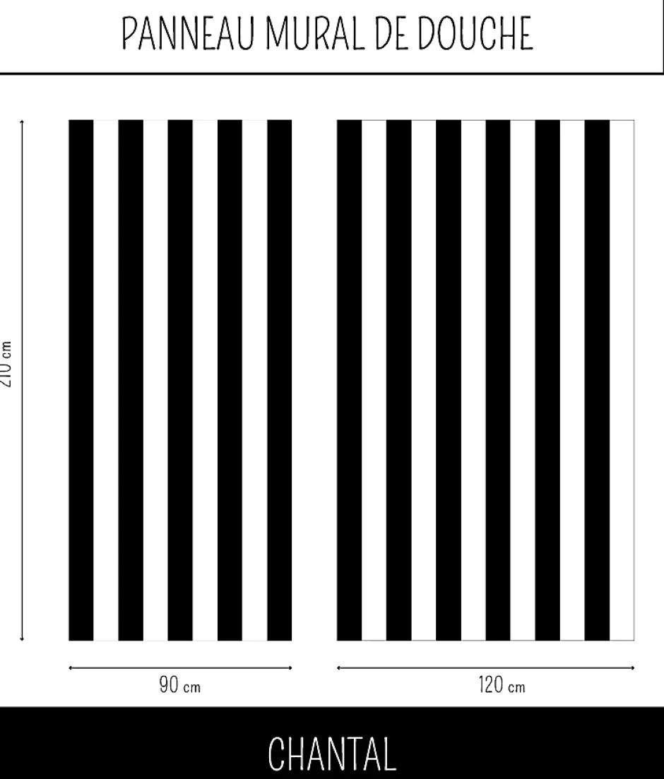 Panneau Mural Alu Douche salle de bain CHANTAL noir et blanc 120 cm x 210 cm Ma Nouvelle Déco-Ma nouvelle décoration Discount