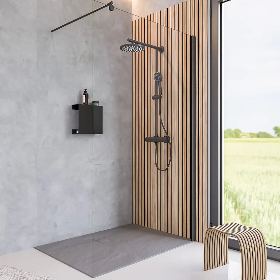 Faire ou refaire sa salle de bains en évitant les gros travaux, c’est possible avec les panneaux muraux Decodésign de Schulte. Étanches, sans joint, faciles à poser et à entretenir, les avantages de ces revêtements sont multiples. Les panneaux se collent tout simplement sur votre ancien carrelage ou un mur brut. Déclinés dans différents coloris et motifs, ces habillages sont aussi très décoratifs. Adoptez-les pour personnaliser votre espace douche.