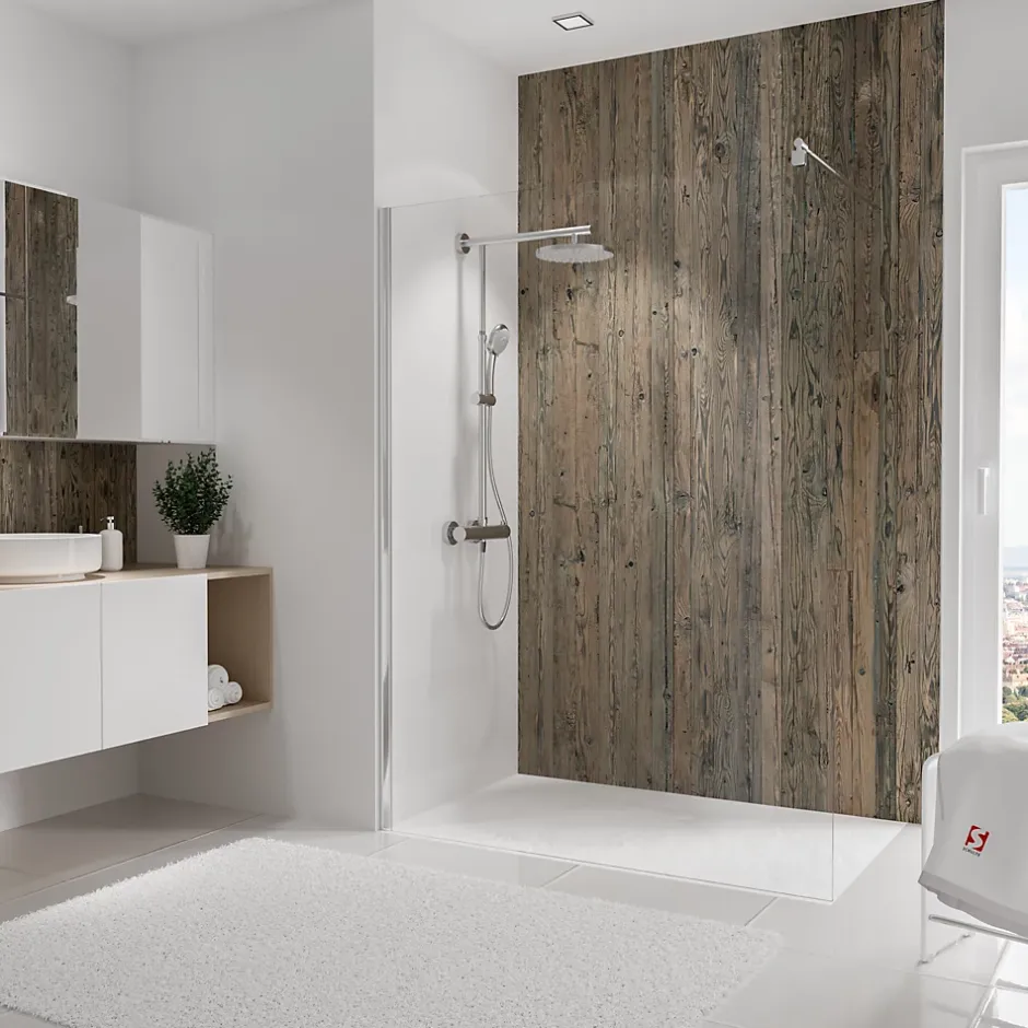 Panneau mural de salle de bains l.150×255 cm, décor bois, Schulte DécoDesign