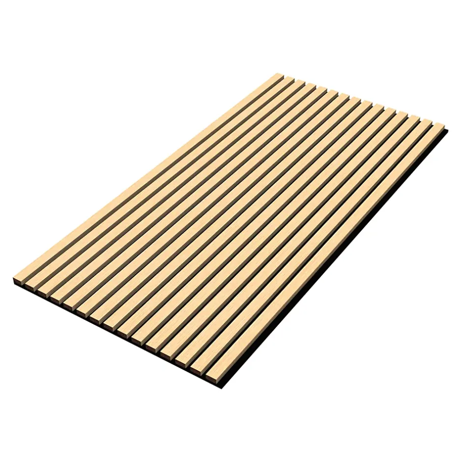 Lot de 16 panneaux acoustiquesLes 16 panneaux de ce lot conviennent à tous types de murs et plafonds, améliorant ainsi l’acoustique de votre chambre ou de votre espace. Leur finition design crée une atmosphère agréable et offre une solution pratique pour optimiser l’acoustique de votre environnement.Description :- ensemble de 16 panneaux pour mur ou plafond- améliore l’acoustique et assure l’isolation sonore- rajoute une touche scandinave à votre intérieur- possiblité de découper les panneaux selon vos besoins- installation facile à vis ou colle- 15 lattes décoratives par panneau- coefficient de réduction du bruit NRC 0,8 et classe d’absortion acoustique BDimensions :- totates (Hauteur x Largeur x Profondeur) : 120 x 60 x 2,1 cm- largeur lattes : 27 mm- espace entre lattes : 13 mm- épaisseur lattes : 12 mm- pièces de montage : 9 mm- surface totale (16 panneaux) : 11,52 m²Matière :- lattes : MDF contreplaqué- panneau de suspension : PET feutre acoustiqueCouleur :effet chêneA noter :Pour une installation au plafond, il est recommandé d’utiliser des vis ainsi que de la colle.Contenu de la livraison :16 x panneauxProduit de la marque :NEU.HOLZ