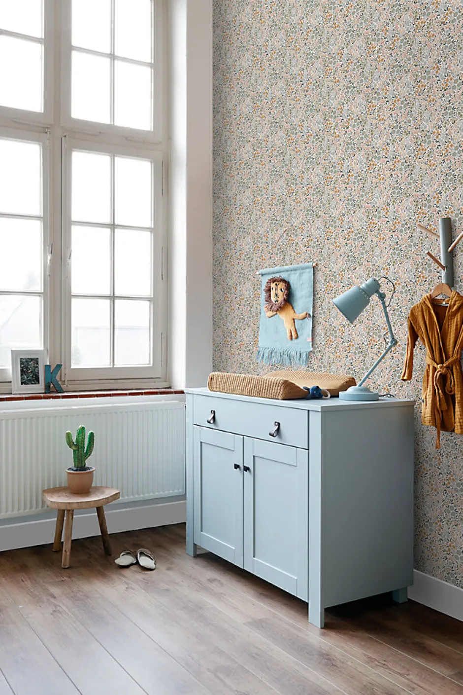 Envie de changer la décoration de la chambre de votre fille ? Avec ce papier peint à motif de fleurs en bleu grisâtre, rose terracotta et vert vous décorez une chambre de fille avec style dans laquelle votre fille se sentira bien. Ce papier peint a tout pour plaire à votre fille.Dimensions, répétition du motif et raccordLes dimensions de ce papier peint sont 53 cm x 10. 05 m (largeur x longueur). Le motif se répète tous les 26. 5 cm. Le papier peint a un raccord droit. Le papier peint possède alors des motifs qui traversent le lé et doivent se retrouver sur le lé d’à côté, à la même hauteur. Cela signifie que lors de l’application du lé suivant, le motif doit être appliqué à la même hauteur.Poser ce papier peintCe papier peint intissé est ultra facile à poser: encollez le mur avec de la colle de papier peint et posez le papier peint intissé directement au mur à partir du rouleau. Vous n’aurez pas besoin de une table à tapisser. Le décollage du papier peint intissé est très facile, même après plusieurs années. Pour un résultat optimal, ESTAhome recommande d’utiliser la colle professionnelle Wallpro PRO-301 pour tous les types de papier peint. Conseil de préparation : Évitez les problèmes d’adhérence de votre papier peint en testant au préalable si votre mur est très absorbant. Pour ce faire, prenez une éponge humide et mouillez une petite partie du mur. Si la tache humide disparaît en quelques secondes, le mur est très absorbant. Dans ce cas, nous vous conseillons d’utiliser une couche de fond pour réduire l’absorption. ESTAhome recommande la sous-couche WALL PRO-401 pour papier peint.Prêt à commencer tout de suite!Ajoutez également la colle de papier peint Wallpro PRO-301 et un kit d’outils Wallpro PRO-933 à votre commande. Ce kit d’outils contient tous les outils nécessaires pour la pose du papier peint intissé. Vous pouvez facilement trouver ces articles sur Castorama en utilisant la fonction de recherche. De cette façon, vous pouvez commencer tou