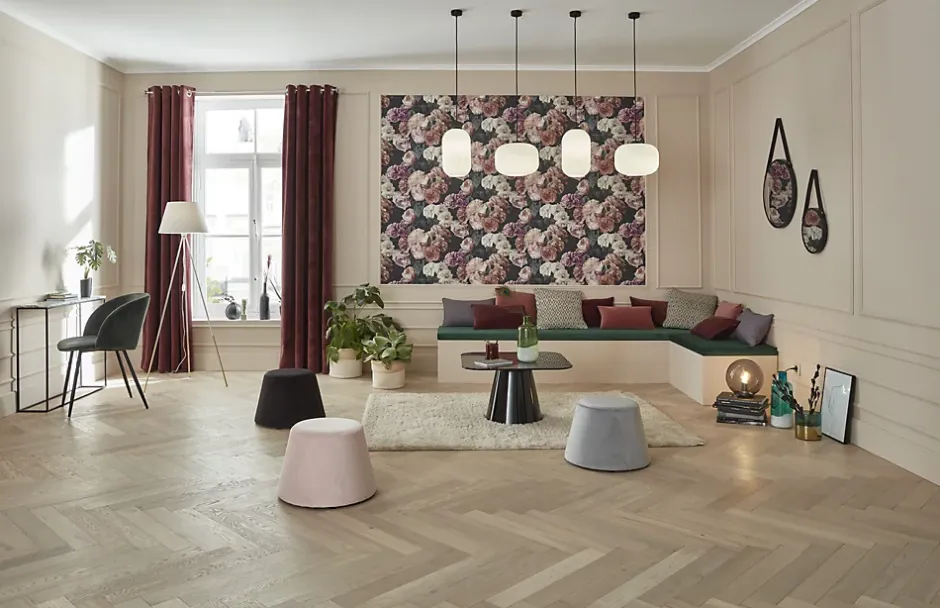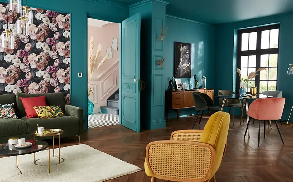 Rien de tel qu’un peu de glamour des années 1920 pour égayer votre intérieur, avec ses teintes riches, ses textures veloutées et ses motifs élégants. Les motifs géométriques créent une impression dynamique, tandis que les imprimés botaniques donnent à votre pièce une touche naturelle. Faites votre choix entre les teintes somptueuses du bleu pétrole et la richesse du vert pin et du noir. Ajoutez des touches d’argent métallisé et d’or ambré pour un style élégant et chic qui laissera sans voix. Notre collection capsule comprend une sélection de rideaux, tringles à rideaux, coussins et papiers peints assortis. Parfaite pour faire renaître le glamour des années 1920 chez vous.