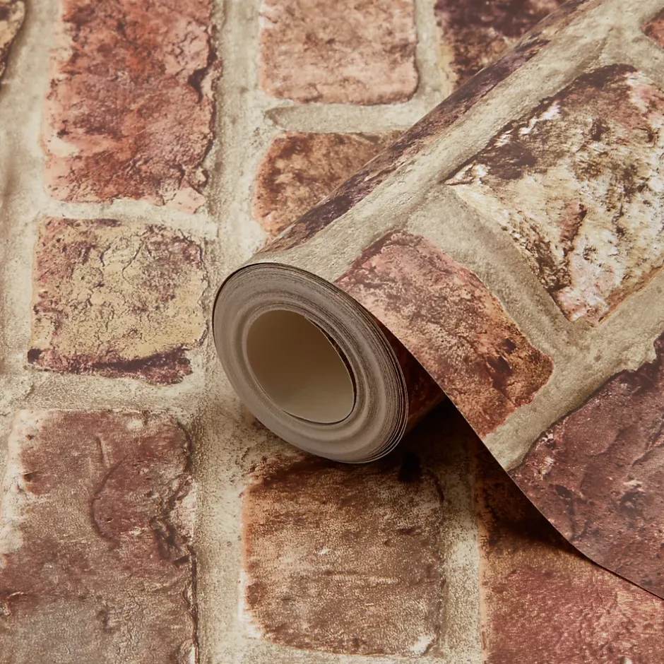 Ce papier peint Tanlay rouge effet brique élégant mettra en valeur la pièce.
