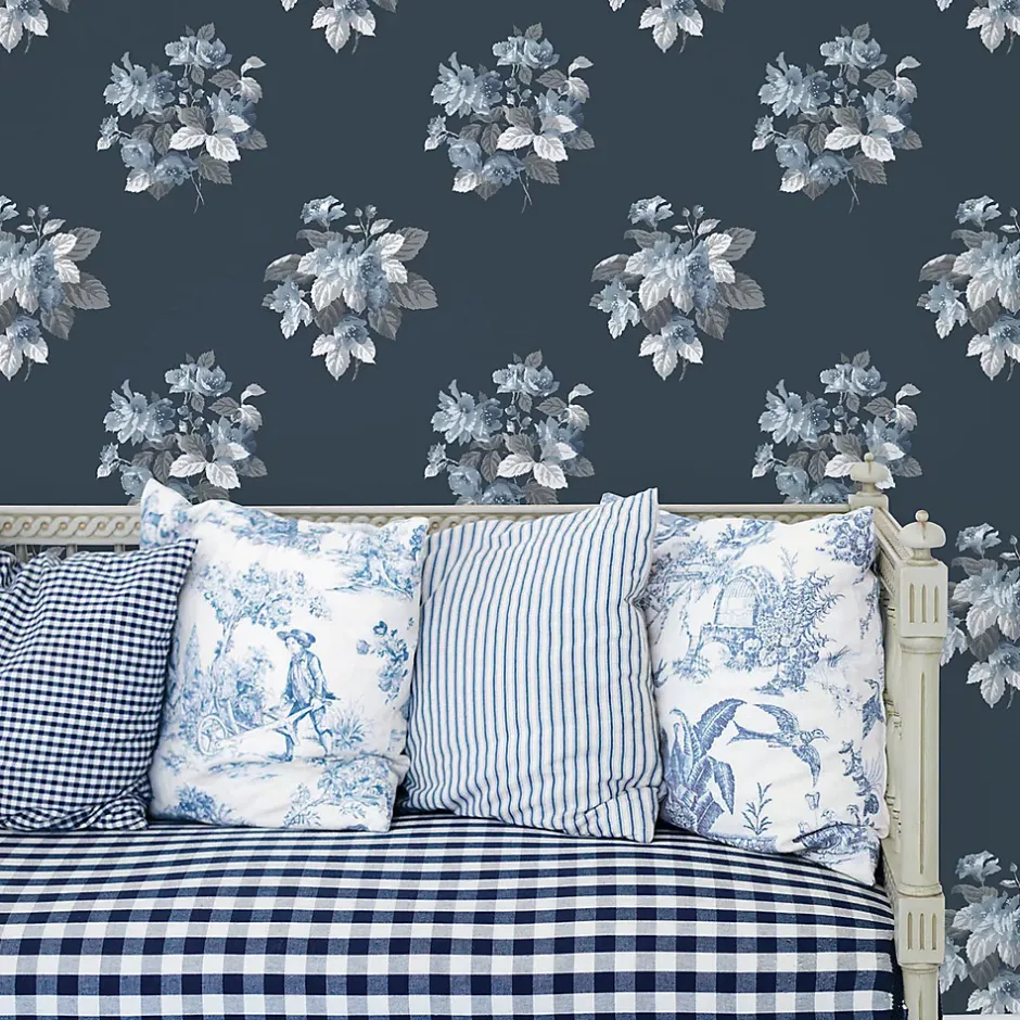 Papier peint intissé Jardin Secret Lutece mat et satiné fleurs bleu, bleu nuit l.1000 x l.53 cm