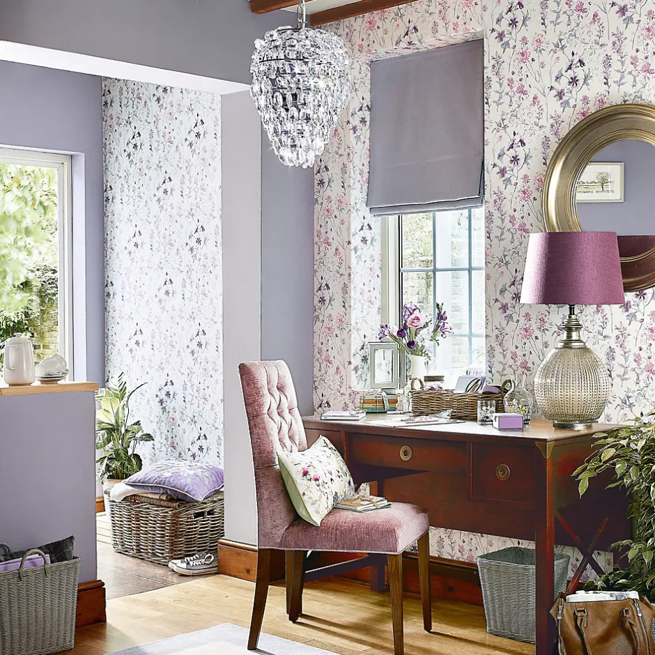 Papier peint intissé Wild meadow imprimé fleurs iris blanc, violet L.1000 x l.52cm Laura Ashley