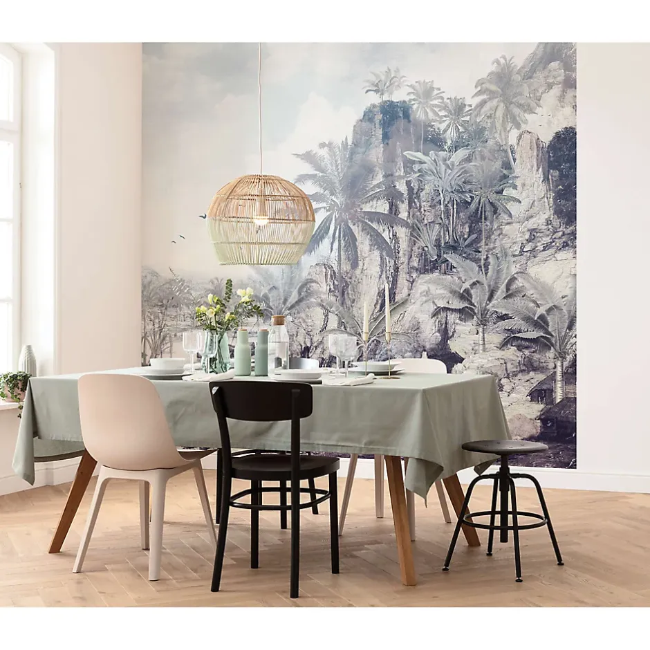 - 6 lés à poser bord à bord après avoir encollé le mur