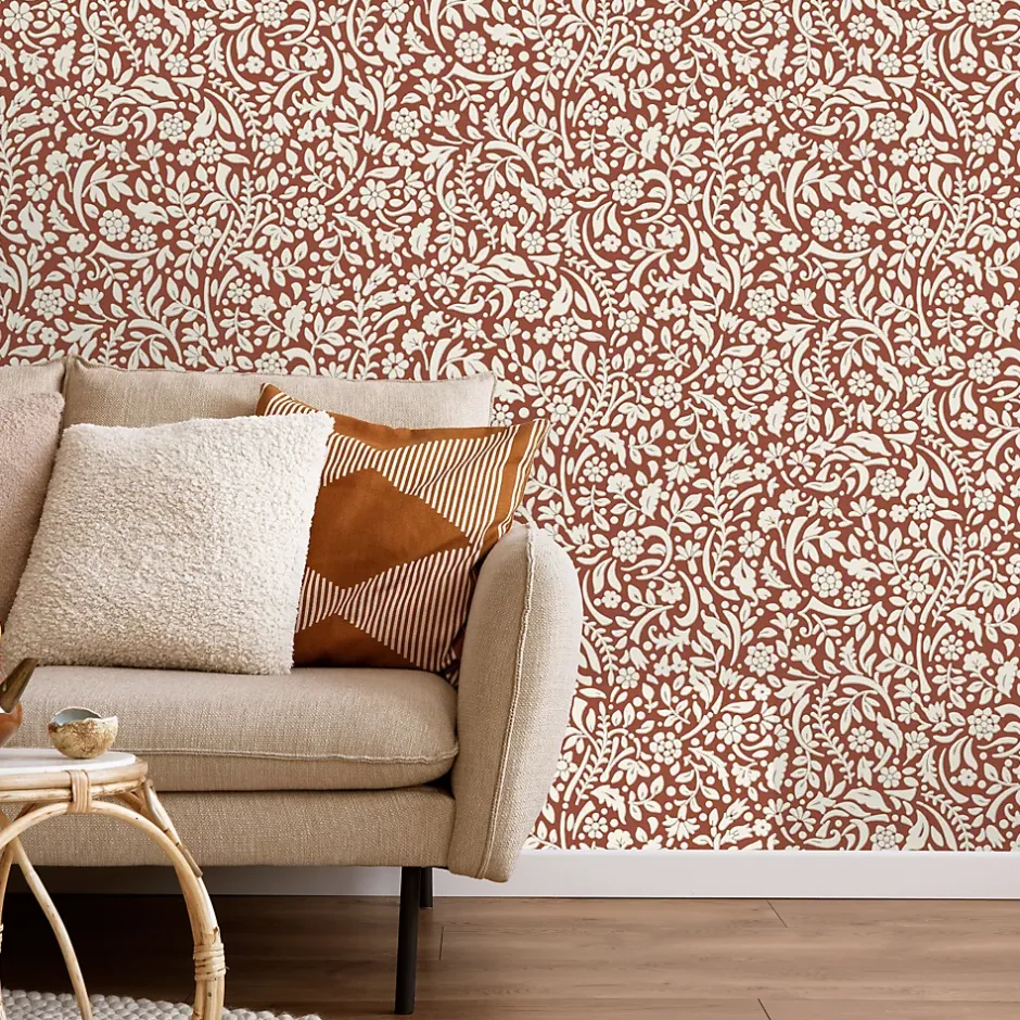 Papier peint vinyle intissé Flaumig GoodHome motif floral terracotta L. 10,05m x l. 0,53m