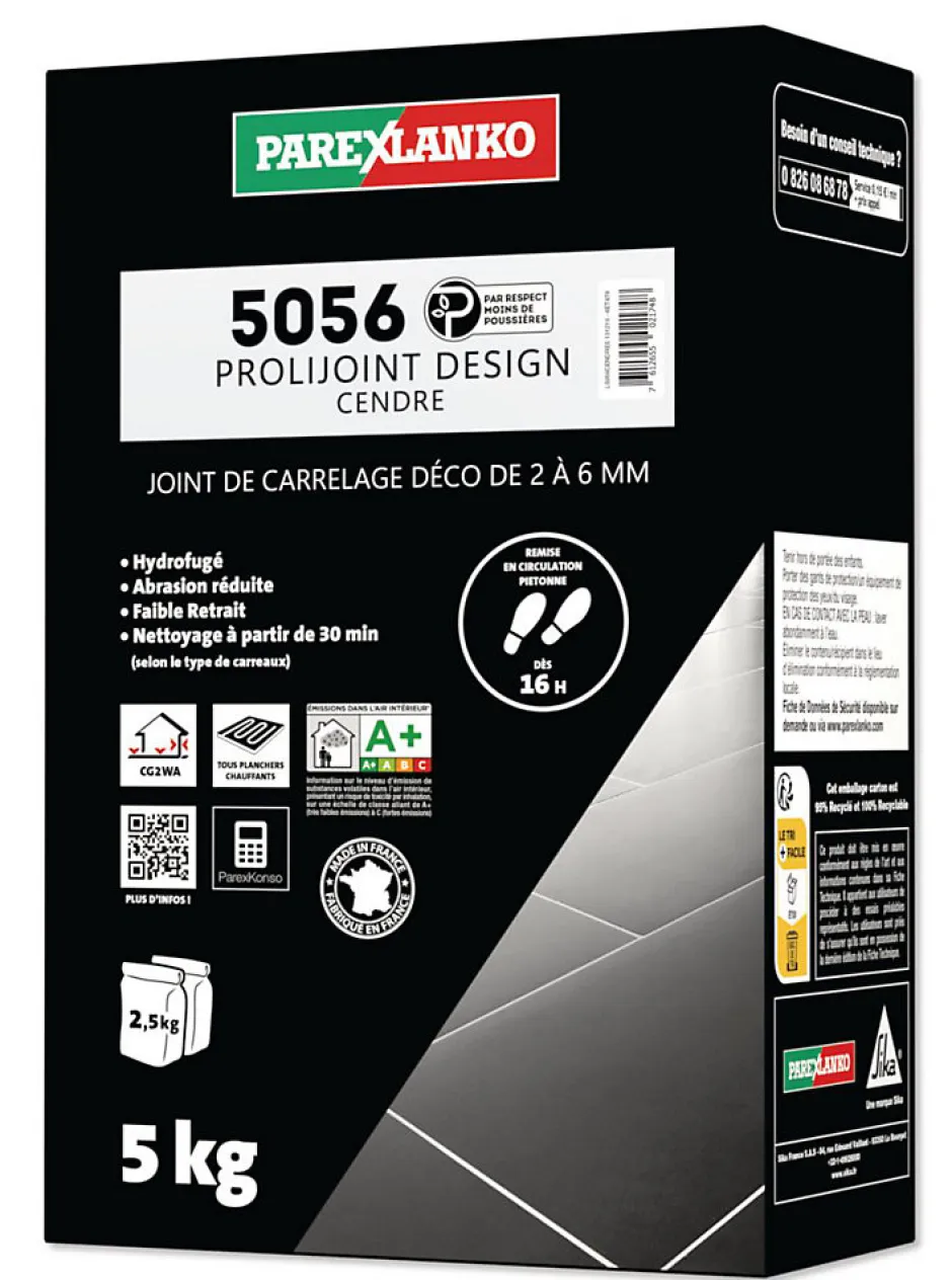 Joint de carrelage ciment de 2mm à 6mm, remise en circulation piétonne dès 16H polyvalent, pour murs et sols, intérieur et extérieur Souple, adapté aux planchers chauffants, supports bois, façade coloris cendre