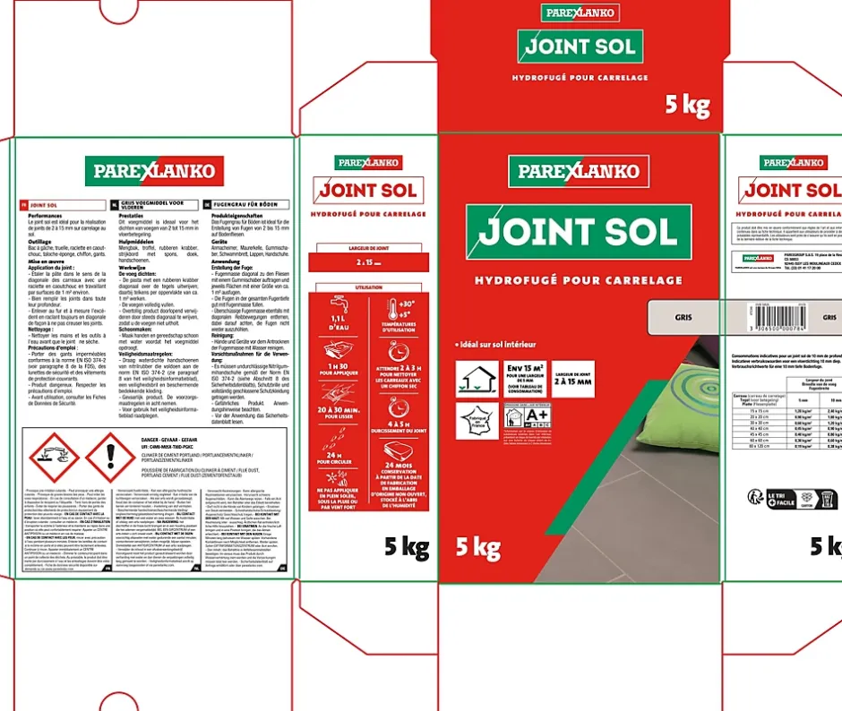 Joint sol hydrofugé gris Parexlanko 5 kg