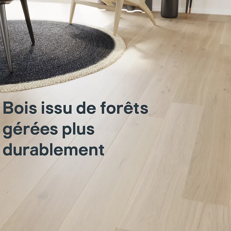 - Ce parquet GoodHome est fabriqué à partir de bois issu de forêts éco gérées.