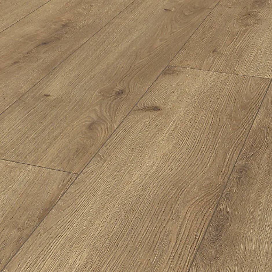 Paquet de 4 lames de parquet flottant stratifié – ter Hürne Chêne Capri • Fabrication allemande – 1,962 m² par paquet. Ce sol stratifié sans plastique, composé à plus de 90 % de bois et matériaux organiques, est hydrofuge, antibactérien, robuste et facile à entretenir. Idéal pour les pièces humides (cuisines, salles de bains) et les foyers avec animaux. Son système clipsable « Smart Connect Pro Aqua » offre une résistance à l’eau stagnante jusqu’à 48 h, empêchant le gonflement du matériau grâce à un scellement spécial et une couche protectrice en résine et corindon. • Caractéristiques principales • Épaisseur : 12 mm • Dimensions des lames : 200,3 x 24,5 cm • Surface par paquet : 1,962 m² • Garantie : 30 ans (usage résidentiel), 5 ans (usage commercial) • Résistances : aux rayures (AC5), pieds de meubles (avec patins), humidité (- de 5 %), glissements (DS). • Usage : Classe 23/33, pour trafic intense en résidentiel et commercial. • Chauffage au sol : Oui (max 26°C, système à eau uniquement). • Classe feu : Bfl-s1. • Avantages • Pose flottante sans colle grâce au système clic facile et fiable. • Antibactérien et antistatique, idéal pour un entretien simplifié. • Adapté aux grandes pièces : prévoir un joint de dilatation de 0,15 %. • Couleur : Il peut y avoir de lègères variations selon les productions• Instructions spécifiques • Avant pose sur chauffage au sol, vérifier l’humidité résiduelle (0,3 % max pour chapes anhydrites, 1,8 % pour chapes en ciment). • Un sol élégant, résistant et compatible avec tous vos besoins, des pièces humides aux espaces à fort passage.