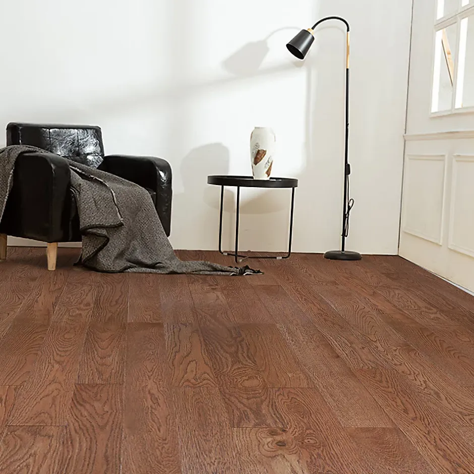 Parquet massif à coller Skara S en chêne verni brun