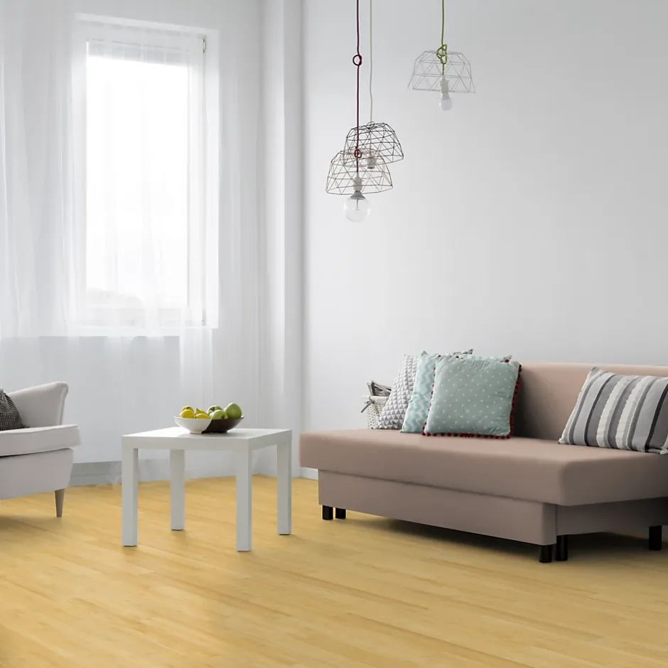 UNE TEINTE NATURELLE ET LUMINEUSELe parquet massif bambou horizontal verni naturel respecte la couleur brute de la tige de bambou. Sa teinte miel claire illumine vos espaces intérieurs et apporte une atmosphère chaleureuse et apaisante. Grâce à ses nœuds visibles, correspondant aux phalanges d’accroissement du bambou, il offre un rendu authentique et naturel qui sublime votre décoration.UN MATÉRIAU DURABLELe bambou massif est une ressource renouvelable qui se régénère rapidement, avec des récoltes possibles tous les 5 à 6 ans. Ce parquet est une alternative durable aux essences de bois traditionnelles.Choisir le bambou, c’est opter pour un revêtement durable.UNE EXCELLENTE RÉSISTANCE AU QUOTIDIENConçu pour résister aux usages intensifs, ce parquet en bambou offre une dureté remarquable, idéale pour les pièces à fort passage.Verni en finition lisse, il est protégé contre l’usure et facile d’entretien. Avec ses 4 chanfreins et son système d’assemblage Rainure & Languette, il assure une pose solide et un rendu esthétique soigné.CARACTÉRISTIQUES TECHNIQUESType de parquet : Bambou massif horizontal naturelÉpaisseur : 15 mmLargeur : 96 mmLongueur : 960 mmColisage : 2,489 m² par unitéTexture : Lisse