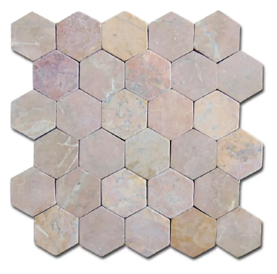 Plaque de mosaïque en marbre et travertin à poser au mur ou au solIl est particulièrement adapté pour recouvrir les murs et, grâce à son traitement, vous pouvez le placer dans la douche intégréeInstructions d’entretien :N’utilisez pas de chiffons abrasifs ni de nettoyants corrosifs.Toujours respecter les instructions du fabricant concernant le mortier-colle et les joints de carrelage.Dimensions :- Trame : 33 x 33 cm- Epaisseur : 1 mm- Hauteur : 0,9 cmMatériaux : Marbre naturel , travertinCouleur : rosePoids : 2 kg