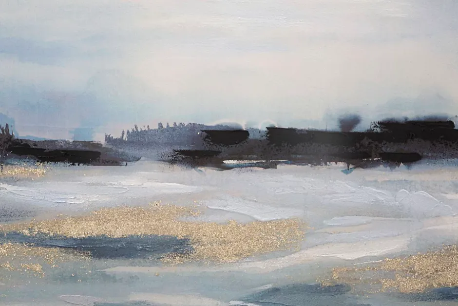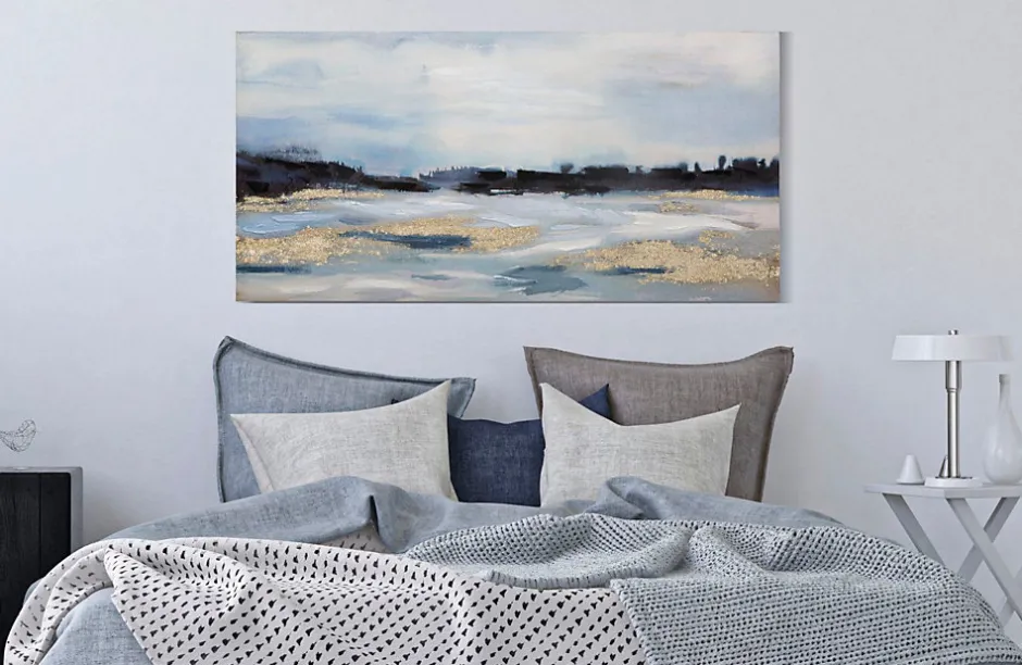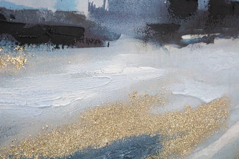 Tableau sur toile avec cadre en bois. Ce motif abstrait rappelle la silhouette d’une ville côtière et apporte une touche d’élégance à n’importe quel mur. Convient à tous les styles de décoration. Dimensions : 120 x 60 cm, épaisseur du cadre : 2,8 cm.