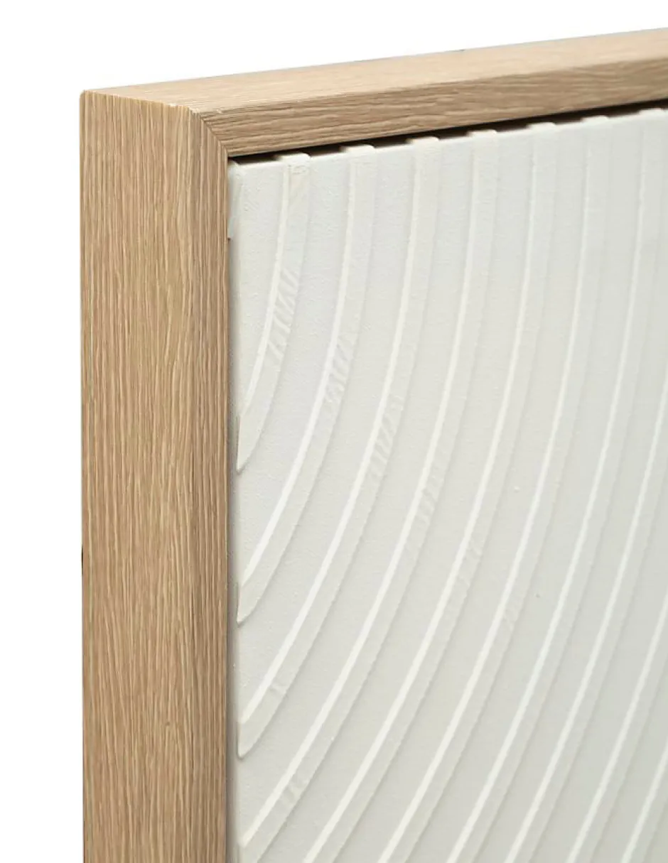 Peinture sur toile encadrée de doré, aux lignes douces et aux textures délicates, créant un effet élégant et apaisant. Un tableau qui célèbre la simplicité comme une forme de beauté essentielle et raffinée. Dimensions : 80 x 120 x 3,8 cm.