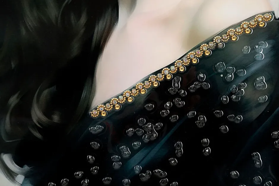 Cette toile, encadrée d’un cadre en bois et d’un cadre en métal doré, incarne charme et mystère. La figure féminine, vêtue d’une élégante robe noire et d’un chapeau raffiné, dégage une aura d’élégance et de séduction. Parfaite pour les intérieurs raffinés, elle apporte une touche de glamour et de profondeur. Avec des applications en relief. Dimensions : 62 x 4 x 92 cm.