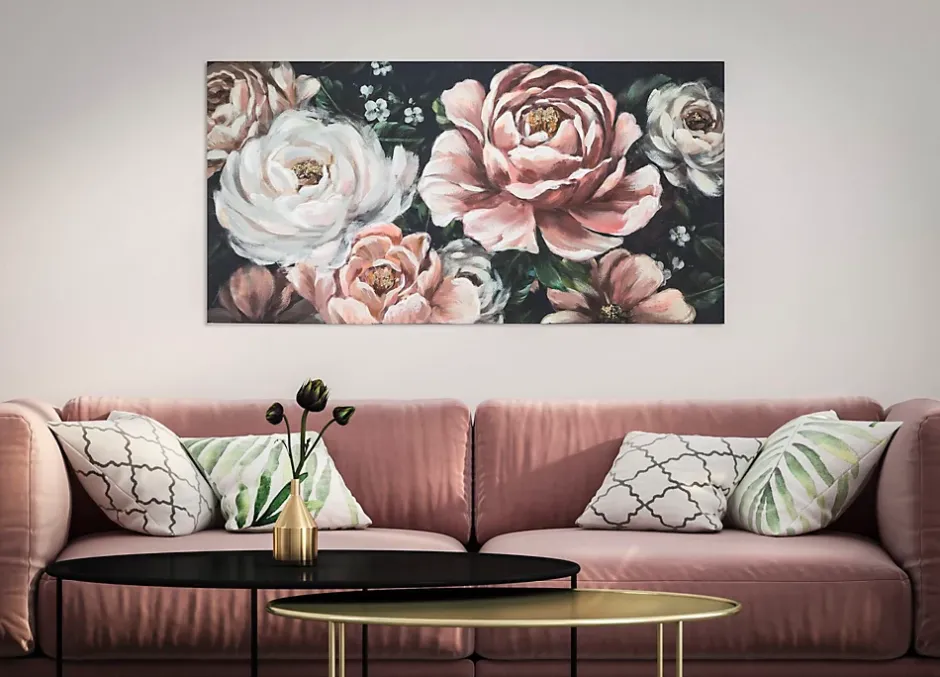 Peinture sur toile avec cadre en bois représentant des fleurs qui apportent une touche de couleur à n’importe quel mur. Convient à tous les décors. Dimensions : 120 x 60 cm, épaisseur du cadre : 3,7 cm.