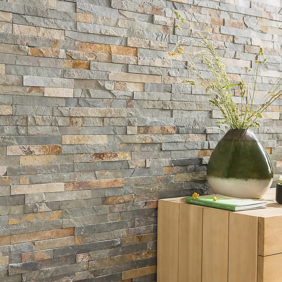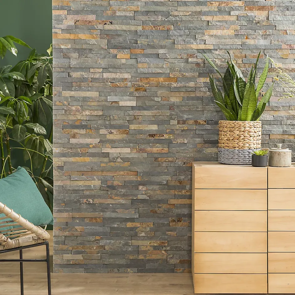 Plaquette de parement Slim 2 pierre naturelle multicouleur (vendue au carton)