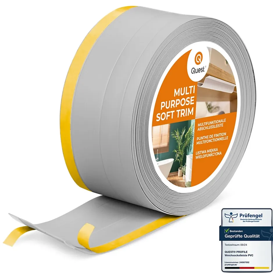 Plinthe de finition W2 en PVC 4,en,1 120 mm, baguette autocollante, masquante, plinthe souple pour sol et mur, gris, 15 m-Quest Sale