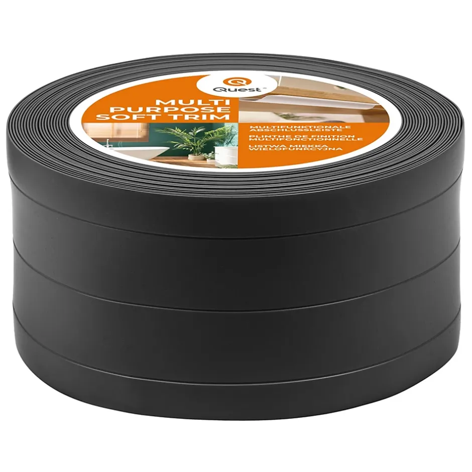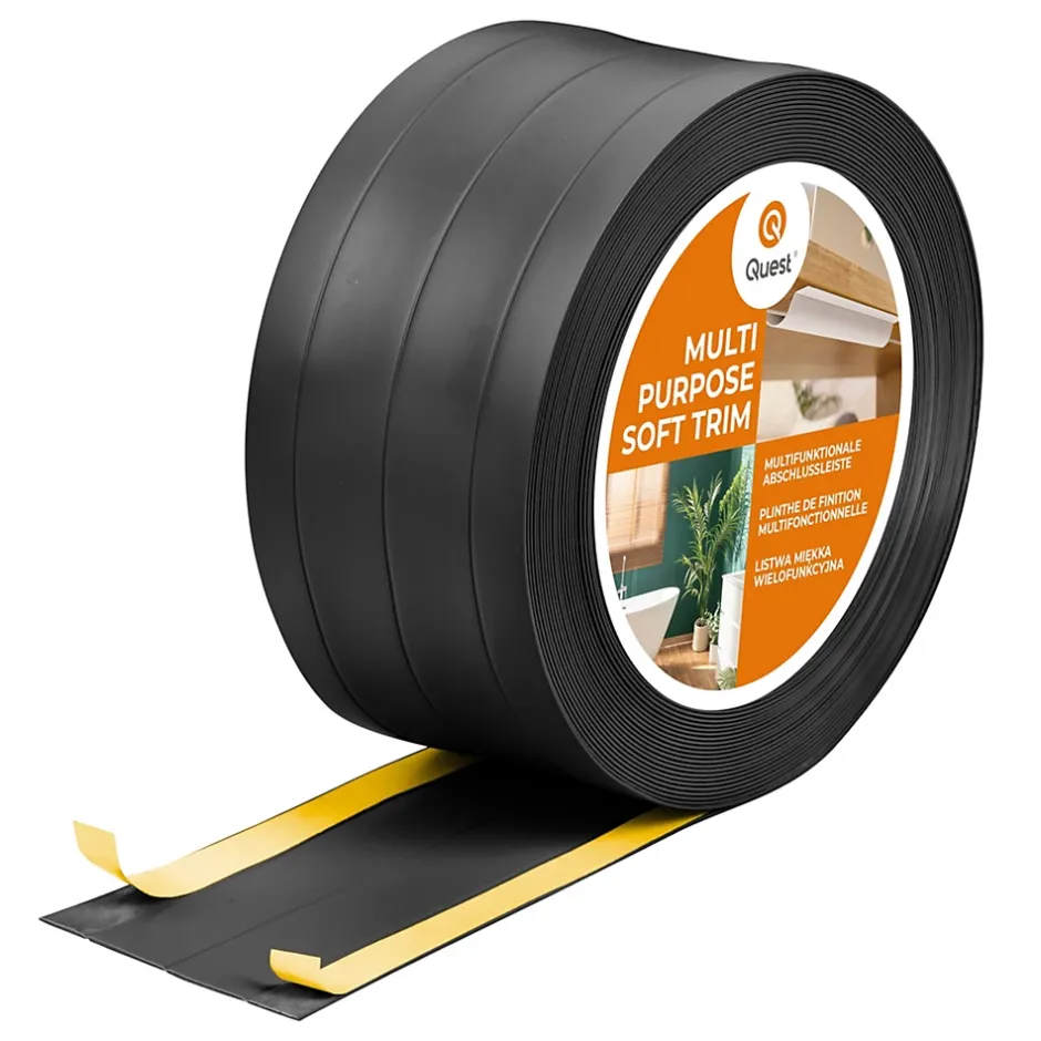 Plinthe de finition W3 en PVC 4,en,1 120 mm, baguette autocollante, masquante, plinthe souple pour sol et mur, noir, 15 m-Quest Hot