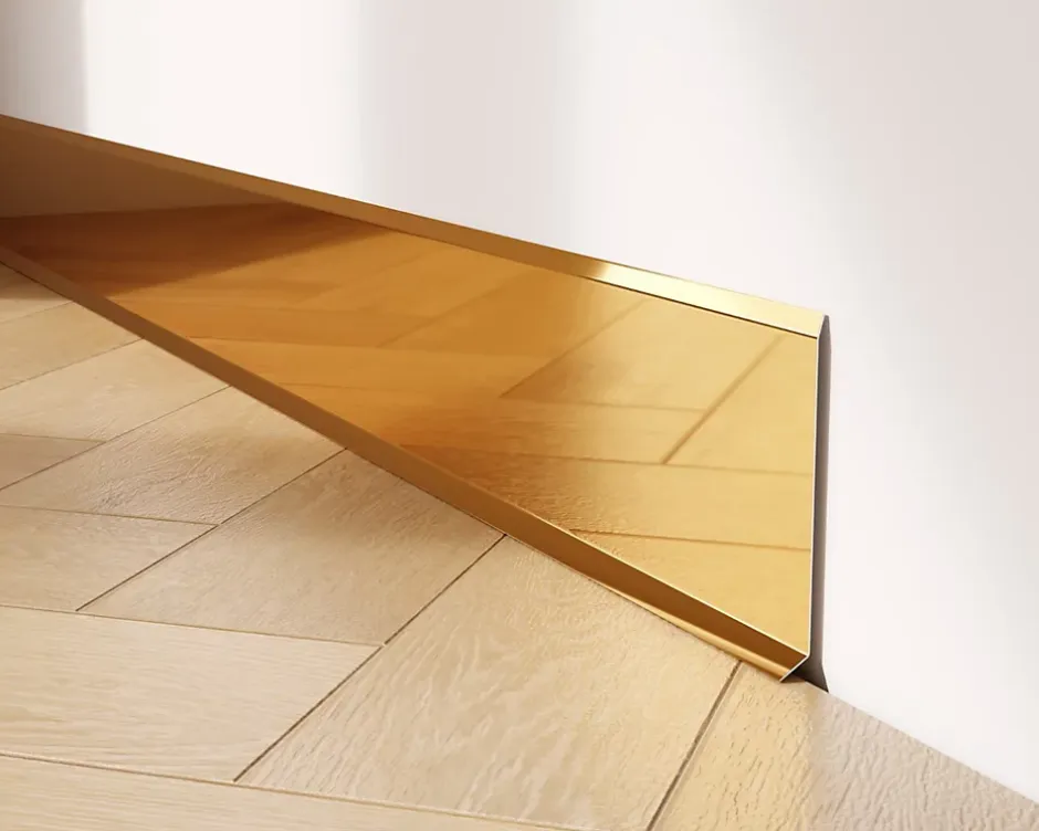 Armature F en acier inoxydable. Caractéristiques : Hauteur de la plinthe : 6cm, 8cm et 10cm;Longueur : 270cm;Épaisseur acier 0,6 mm;Matériau : acier inoxydable coloré PVD;Application : mur (plinto de plancher);Découpe sur mesure : possible en utilisant une meuleuse d’angle ou une cisaille pour métaux.-acier inoxydable SUS 304; -épaisseur 0,6 mm;-précision dimensionnelle grâce à l’utilisation de la découpe laser;-couleur durable, résistant à la lumière et non abrasif obtenu dans le processus de coloration; -haute résistance thermique;-résistance aux produits chimiques domestiques.Pour que nos plinthes en acier restent toujours éclatantes, suivez ces étapes simples de nettoyage :Chiffon en microfibre et eau : Utilisez un chiffon doux en microfibre et de l’eau simple pour enlever la saleté et les empreintes. Cette méthode est efficace et n’endommage pas les surfaces brillantes.Détergents spécifiques : Si vous préférez utiliser un produit spécifique, vous pouvez acheter des détergents spécialement formulés pour nettoyer l’acier inoxydable. Assurez-vous de suivre attentivement les instructions du fabricant.Évitez les produits agressifs : N’utilisez jamais de produits chimiques abrasifs tels que des « CIF » ou des paillettes, car ils pourraient rendre la surface de la décoration opaque. Nos profilés ont une résistance chimique élevée, mais sont sensibles aux rayures.Choisissez le bas-fonds F pour une finition impeccable et une installation parfaite, combinable avec la série : F, puis avec les accessoires : FLI, FL et FI.Combinable avec toute la gamme de nos profils Ilcom.