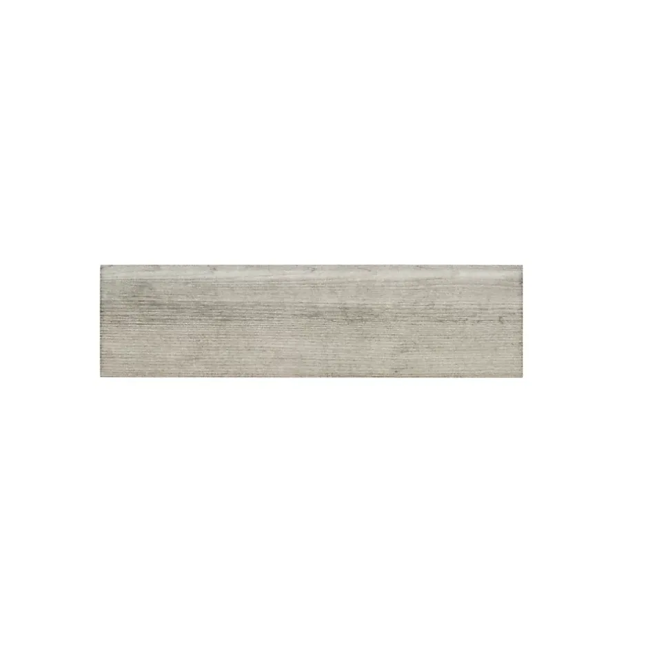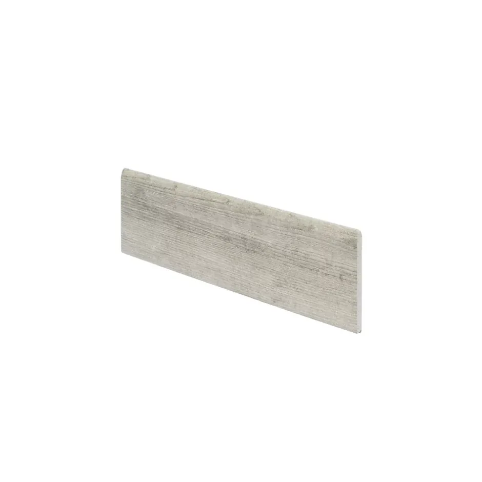 Cette plinthe effet bois gris mat s’accorde parfaitement avec le carrelage Norwegio.