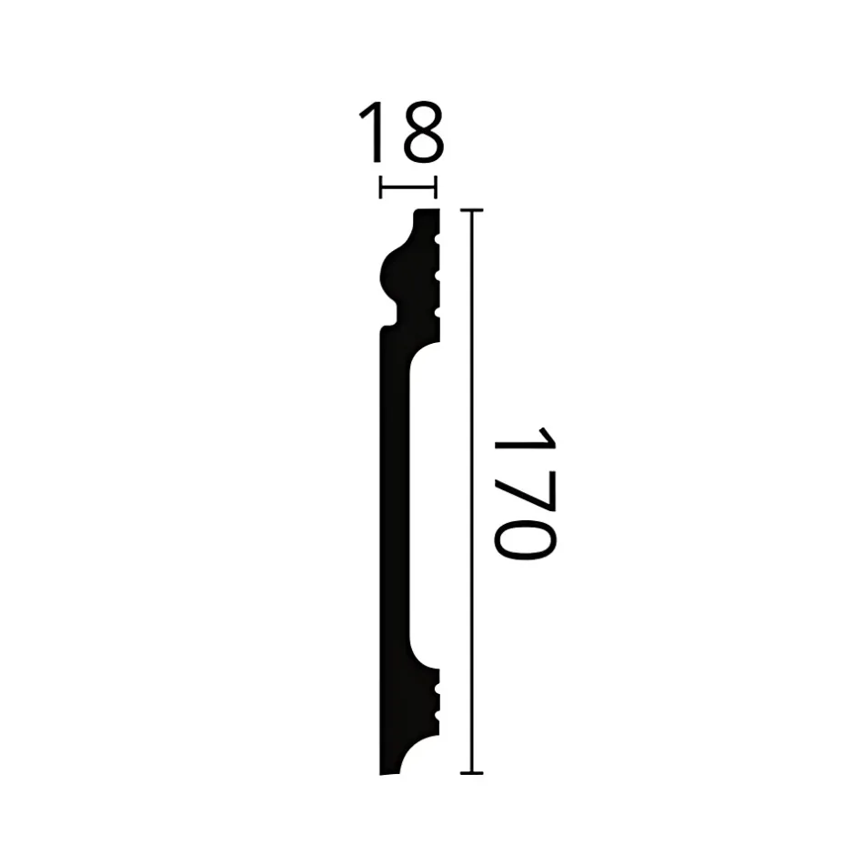 - Plinthe, dimensions: 200 cm x 1,8 cm x 17 cm. La surface est prétraité