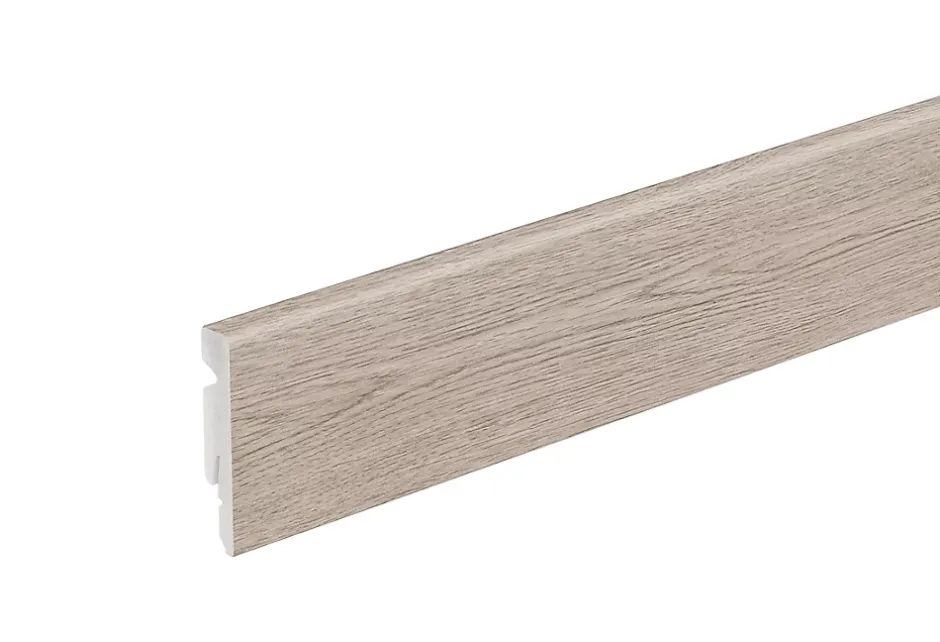 - Recouverte d’une feuille décorative, cette plinthe se coordonne parfaitement à votre sol