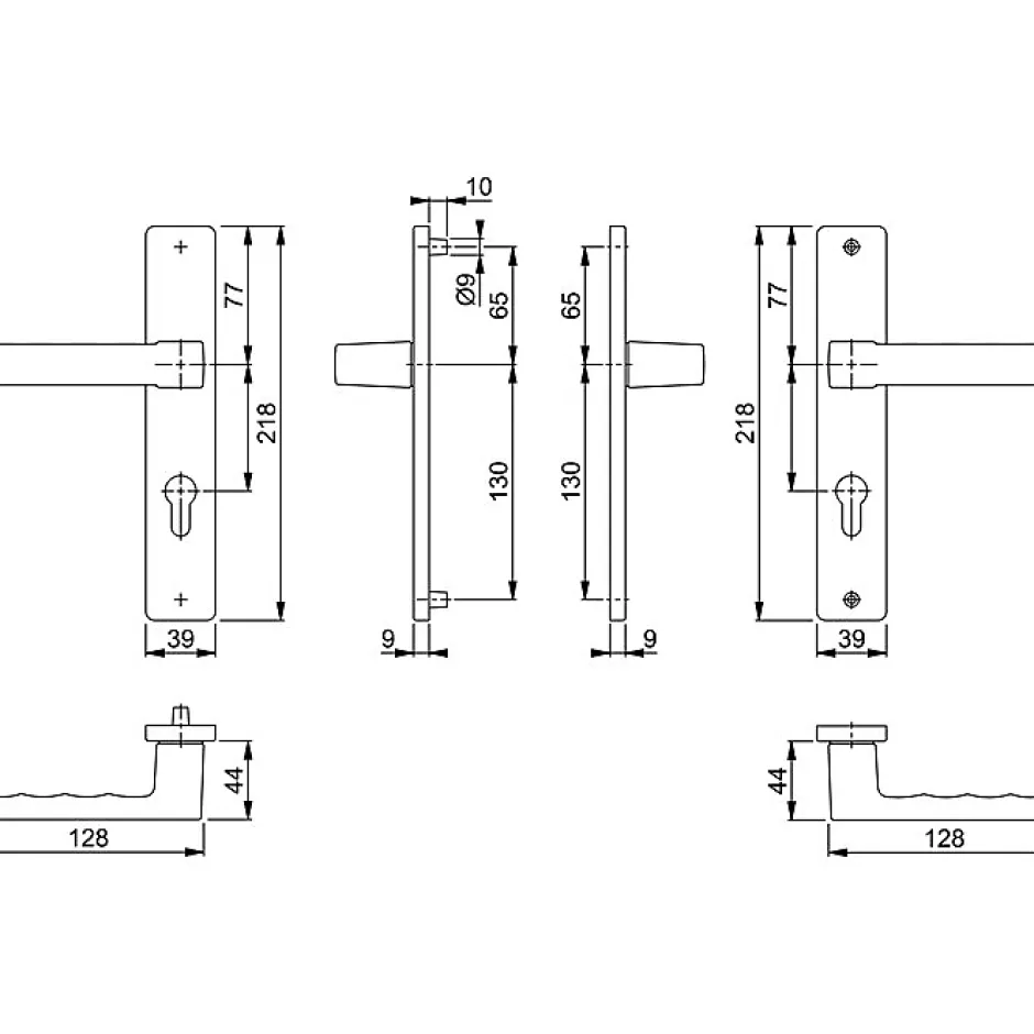 Poignée de porte sur plaque longue – finition noir mat F9714M Fonction à clé I – serrure 70 mm – entraxe de fixation 195 mm Aluminium – carré 7 mm – poignée 128 mm – profondeur 44 mm Plaque 218 × 39 mm – pour porte de 38 à 47 mm d’épaisseur Norme DIN EN 1906 – usage fréquent (grade 3) – résistance corrosion grade 4 Montage rapide sans outil – fabrication européenne – garantie 10 ans