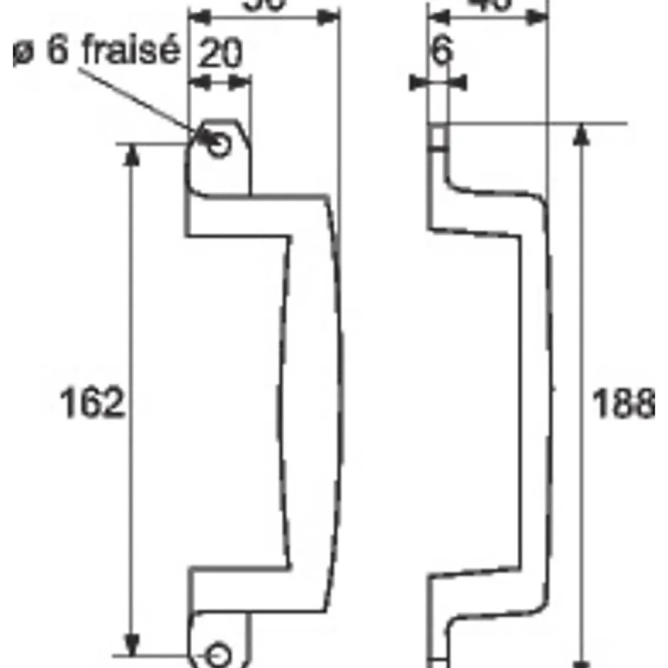 Longueur poignée : 188 mm Entraxe : 162 mm Déport : 50 mm