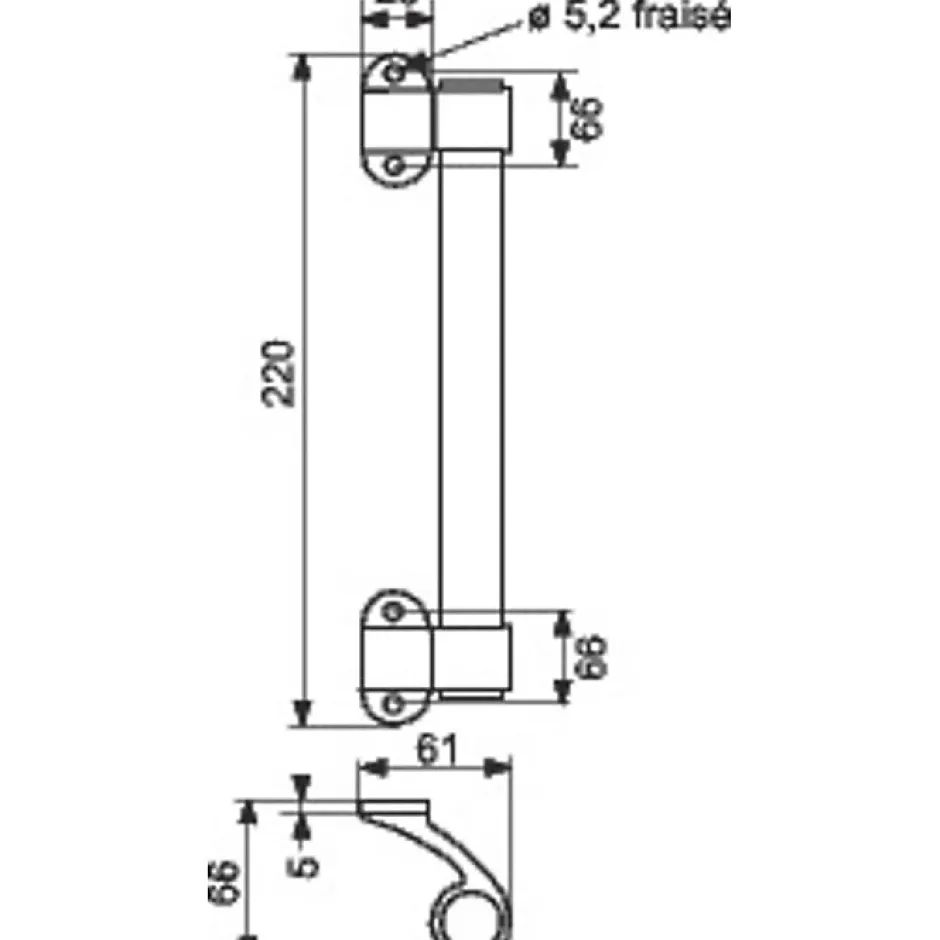 Longueur poignée : 220 mm Déport : 66 mm Diamètre : 25 mm