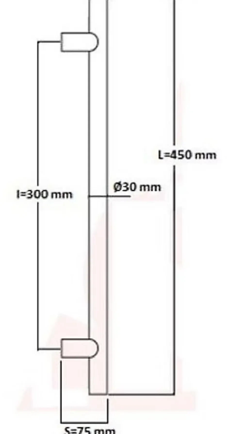 Poignée de tirage Professionnelle Diamètre 30 mm – Entraxe=300 mm – Longueur 450 mm -Hauteur 75 mm – en INOX 304 ( A2) Finition Finition Laquée RAL 9005 Noir Mat. Livrée avec 2 fixations simples, traversants la porte et très facile à installer, composées de 2 tiges filetées en fer zinguée de longueur 52 mm x diamètre 8 mm, qui se visse sur une olive en Laiton, bloquée par une vis pointeau latérale dans le tube, M6 mm en inox, s’accouplant dans une bague en Inox, sertis dans le tube de la poignée, et 2 écrous et 2 rondelles.Produit en Italie. Sélectionné pour son excellence par HardwarExchange