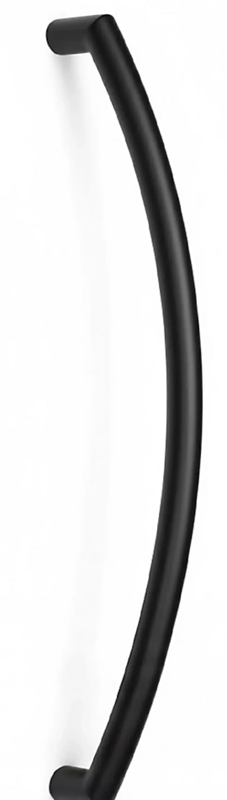 Poignée de tirage Professionnelle Diamètre 32 mm – Entraxe 350 mm – Largeur 100 mm -Hauteur 75 mm – en INOX 304 ( A2) Finition Laquée RAL 9005 Noir Mat. Livrée avec 2 fixations simples, traversants la porte et très facile à installer, composées de 2 tiges filetées en fer zinguée de longueur 52 mm x diamètre 8 mm, qui se visse sur une olive en Laiton, bloquée par une vis pointeau latérale dans le tube, M6 mm en inox, s’accouplant dans une bague en Inox, sertis dans le tube de la poignée, et 2 écrous et 2 rondelles.Produit en Italie. Sélectionné pour son excellence par HardwarExchange