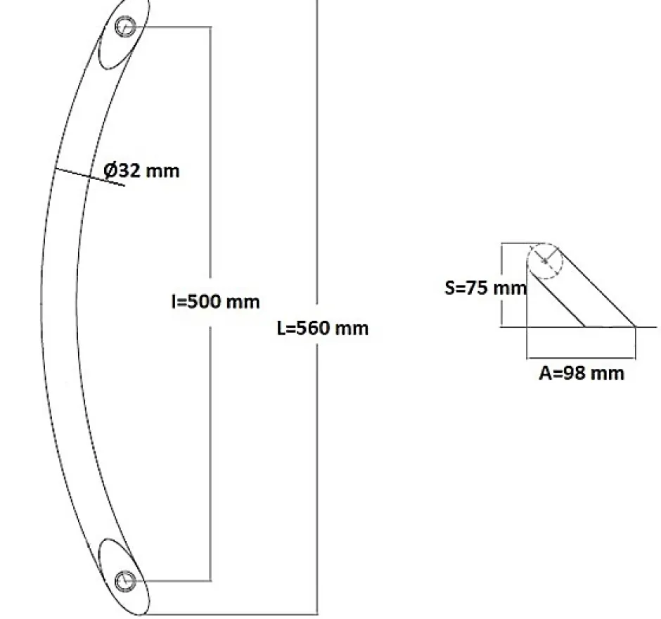 Poignée de tirage Professionnelle Diamètre 32 mm – Entraxe=500 mm – Longueur 600 mm -Hauteur 85 mm – en INOX 304 ( A2) Finition Laquée RAL 9005 Noir Mat. Livrée avec 2 fixations simples, traversants la porte et très facile à installer, composées de 2 tiges filetées en fer zinguée de longueur 52 mm x diamètre 8 mm, qui se visse sur une olive en Laiton, bloquée par une vis pointeau latérale dans le tube, M6 mm en inox, s’accouplant dans une bague en Inox, sertis dans le tube de la poignée, et 2 écrous et 2 rondelles.Produit en Italie. Sélectionné pour son excellence par HardwarExchange