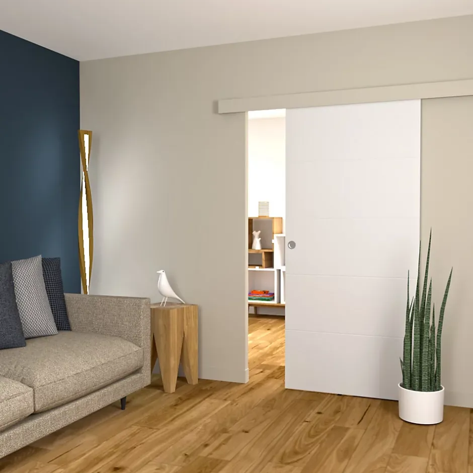 Solution idéale pour optimiser l’espace en créant des séparations, la porte coulissante Slot est composée d’une âme alvéolaire. Ce bloc porte prêt à peindre a un design contemporain pour un look discret. Il vous permettra de personaliser votre intérieur selon vos goûts. Installée avec un système coulissant à galandage ou en applique, la porte Cottage pourra répondre à tous les besoins. Disponible en différentes tailles, plusieurs couleurs et en version bloc porte.