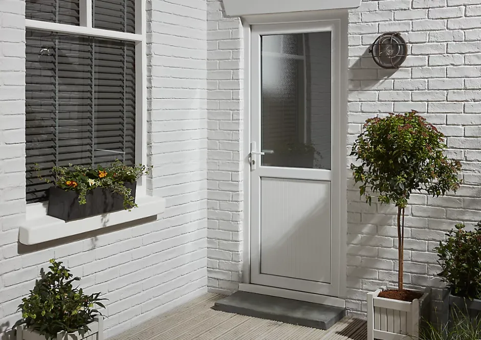 Porte de service 1/2 vitrée pvc 205 x 90 cm poussant droit.
