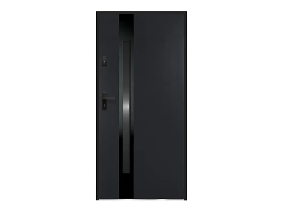 Vous souhaitez donner un nouveau souffle à votre extérieur ? Notre porte d’entrée BRAGA apportera une touche géométrique et contemporaine à votre maison !Caractéristiques Couleur (nuance) : Gris anthracite Matière (précision) : Verre trempé, Acier Epaisseur verre : 52 mm Finition : Fumé Type de porte : Porte simple Coefficient de résistance thermique : 1.5 Affaiblissement acoustique : 29 dB Equipement inclus : Poignée, Barillet aux normes européennes, Serrure à clé, Huisserie Nombre de jeux de clés : 6 Type de pose : en tunnel (ou en tableau) Sens d’ouverture : Poussant droit Utilisation : Extérieur Gamme : Good for Planet Produit : Fabriqué en Europe Livré monté (sauf pieds et/ou poignées) Hauteur du seuil : 20 mm Epaisseur du dormant : 110 mm Epaisseur de l’ouvrant : 55 mm Nombre de points de serrure : 2 Couleur face extérieure : anthracite (RAL 7016) Couleur face intérieure : anthracite (RAL 7016)Dimensions Longueur : 95 cm Hauteur : 203.5 cm Profondeur : 9 cm Longueur hors tout : 100 cm Hauteur hors tout : 207 cm Profondeur hors tout : 11 cmLivraisonColisColis n°1 : Longueur 210 cm, Largeur 103 cm, Hauteur 13 cm, Poids 43 kg.