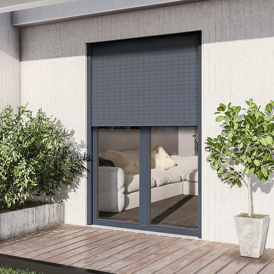 Porte fenêtre alu 2 vantaux tirant droit avec volet roulant électrique GoodHome gris – 120 x h.215 cm – Uw 1,7