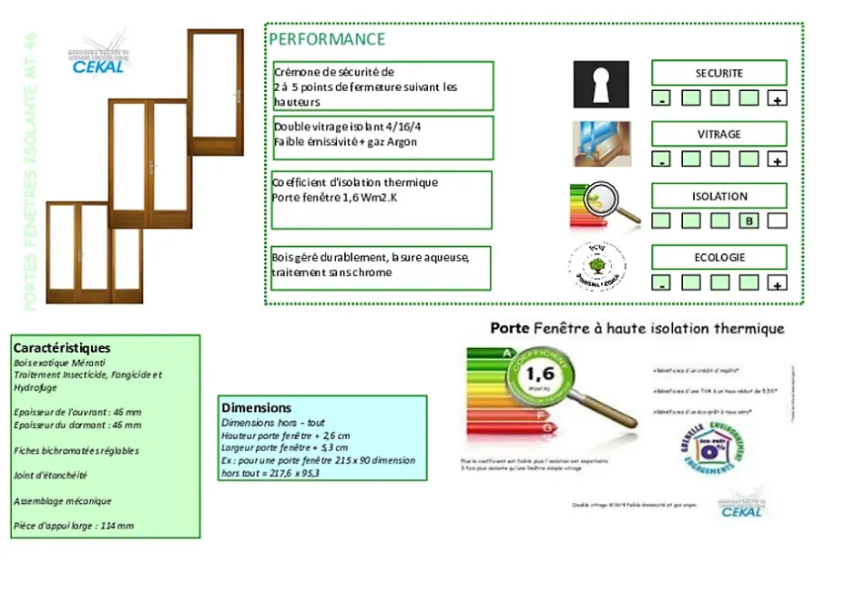 Decouvrez notre porte fenetre en bois a trois vantaux, conçue pour allier esthetique moderne et fonctionnalite. Avec ses dimensions genereuses de 215 cm de hauteur par 180 cm de largeur cote tableau (217,6 x 185,3 cote total hors tout), cette porte fenetre assure une luminosite optimale tout en offrant une isolation performante. Elle repond aux exigences de clients a la recherche de produits de qualite superieure. POIGNEE ET BARILLET FOURNIS La porte fenêtre Bois 3 Vantaux s’adresse à un public exigeant, composé de particuliers et de professionnels tels que des artisans, architectes et décorateurs. Idéale pour les projets de rénovation ou de construction neuve, elle convient parfaitement à ceux qui valorisent la durabilité, le design et la qualité à un prix abordable. Cette porte fenêtre est conçue pour une installation en extérieur, que ce soit dans un contexte résidentiel ou professionnel. Elle est parfaitement adaptée aux façades de maisons, extensions de salon, ou encore pour les ouvertures sur des terrasses ou balcons.