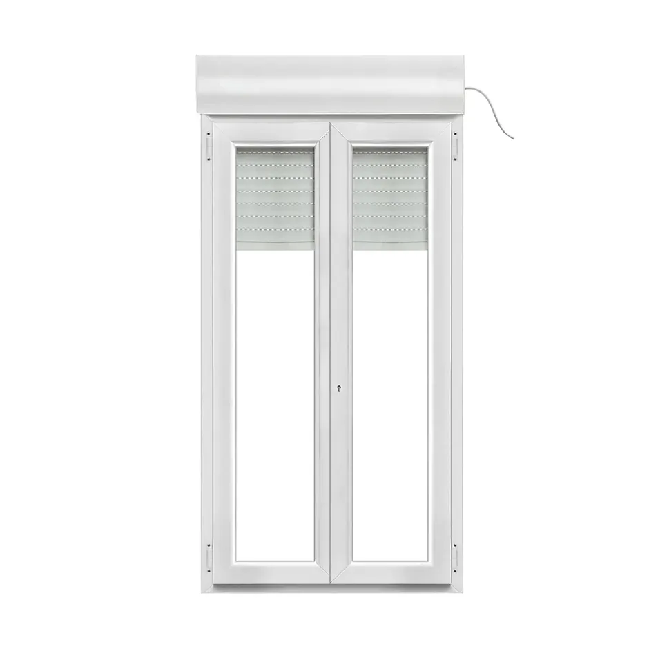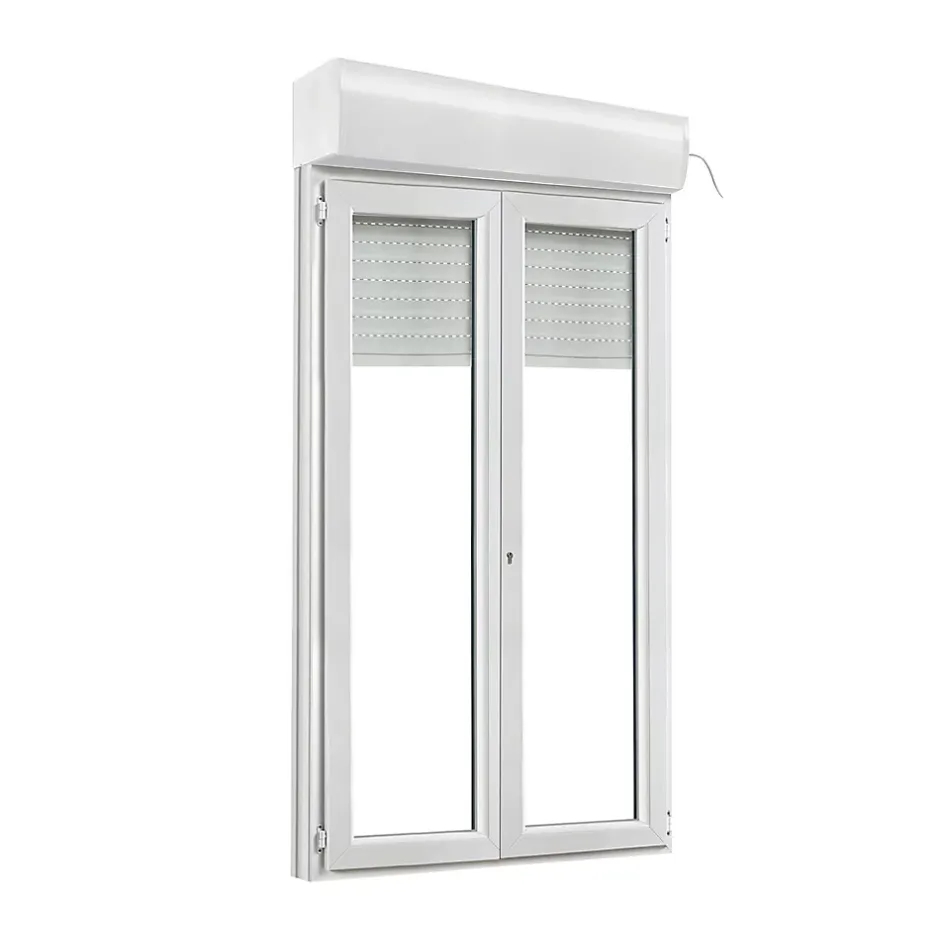 Porte fenêtre pvc 2 vantaux tirant droit avec volet roulant électrique GoodHome blanc – 120 x h.215 cm – Uw 1,2