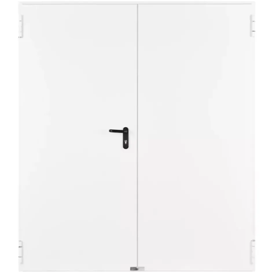 Dimensions Nominales : 890+880 X 2050 Côtes de réservation Maçonnerie : 1780 X 2060 Passage libre entre huisseries : 1694 X 2017 La Gamme Coupe-Feu EI60 – 2 vantaux est conçue pour compartimenter efficacement les grands volumes tout en intégrant une isolation thermique performante. Caractéristiques techniques : Porte à Recouvrement 3 côtés de 53 mm d’épaisseur Feuillure centrale de battement Résistance au feu : EI₂ 60 Affaiblissement acoustique : 31 dB avec kit acoustique Isolation thermique : 1,5 W/m²K avec joint KS-F361-1 Vantaux acier 7/10ᵉ, épaisseur 53 mm – âme feu & acoustique Bâti acier galvanisé 15/10ᵉ – tunnel ou angle – 12/10ᵉ Crémone encastrée semi-fixe, sélecteur de fermeture invisible (MC3) Ferrage : 2 charnières (dont 1 à bille), 2 pions anti-dégondage Serrure DIN 1 point – axe 65 mm Finition texturée Applications recommandées : Sites industriels, ERP, zones de stockage, halls techniques ou zones de compartimentage exigeant une tenue feu 1 heure. Pose en extérieur ou intérieur. Le certificat coupe-feu est valable uniquement en France. Spécialiste français dans la conception, la fabrication sur mesure et la vente de produits de fermetures de bâtiment.