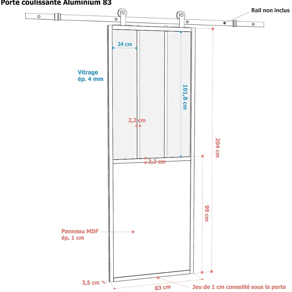 La porte coulissante noire Atelier est idéale pour séparer vos espaces, sans perdre de place. Elle comporte trois panneaux en verre trempé de 4 mm qui apportent de la lumière à vos pièces. Adapté aux cloisons, elle s’ouvre par coulissement. La partie inférieure est en panneau MDF noir satiné et la structure est en aluminium. Elle est équipée d’une rainure sur son champ inférieur pour permettre un guidage optimal au sol. Pensez à associer un rail à votre porte, indispensable à son bon fonctionnement. Disponible en plusieurs tailles et coloris, la porte Atelier est également disponible en bloc-porte. Pour une décoration harmonieuse, associez-le aux cloisons de fenêtres Le rail est vendu séparément.