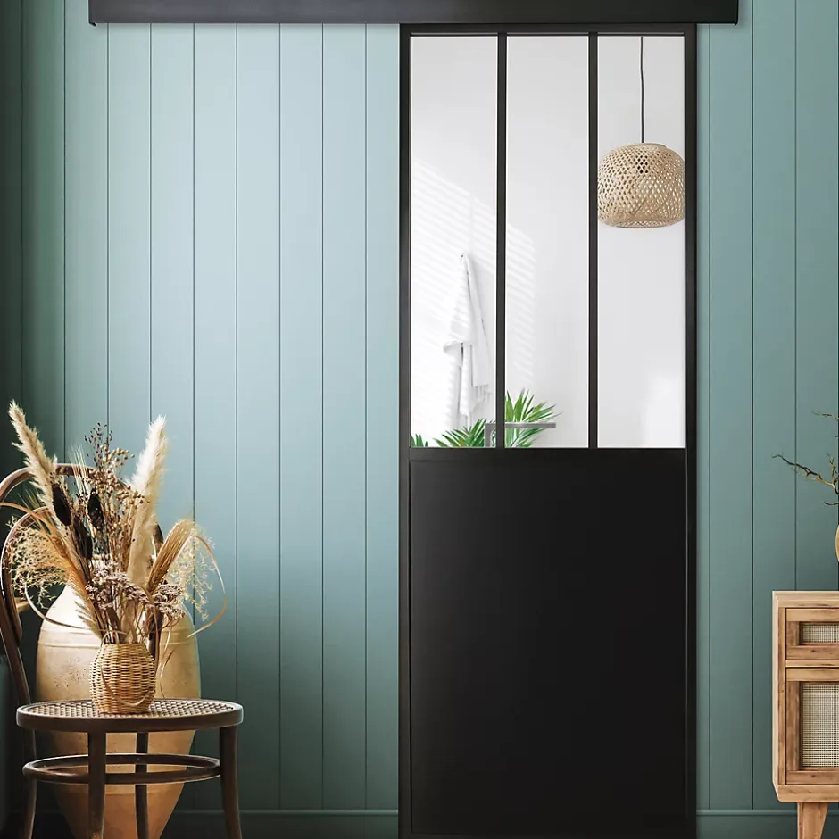 La porte coulissante noire Atelier est idéale pour séparer vos espaces, sans perdre de place. Elle comporte trois panneaux en verre trempé de 4 mm qui apportent de la lumière à vos pièces. Adapté aux cloisons, elle s’ouvre par coulissement. La partie inférieure est en panneau MDF noir satiné et la structure est en aluminium. Elle est équipée d’une rainure sur son champ inférieur pour permettre un guidage optimal au sol. Pensez à associer un rail à votre porte, indispensable à son bon fonctionnement. Disponible en plusieurs tailles et coloris, la porte Atelier est également disponible en bloc-porte. Pour une décoration harmonieuse, associez-le aux cloisons de fenêtres Le rail est vendu séparément.