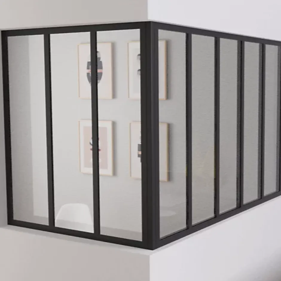 Le poteau d’angle pour verrière d’intérieur permet d’assembler deux verrières en angle. Profil en aluminium noir.