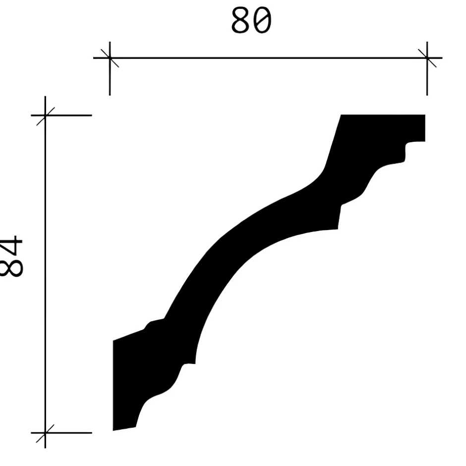 - Corniche, dimensions: 200 cm x 8 cm x 8,4 cm. La surface est prétraité